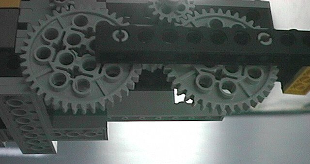 Click on the the picture here to see the drive wheels in detial, notice how the wheels both hold the drive arm giving the robot the piston motion.